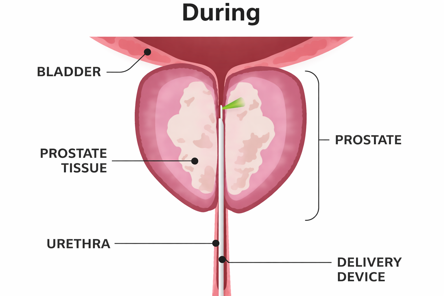 Steam treatment involves injecting steam into the prostate to destroy enlarged tissue which is causing blockage to urine flow and bothersome symptoms.